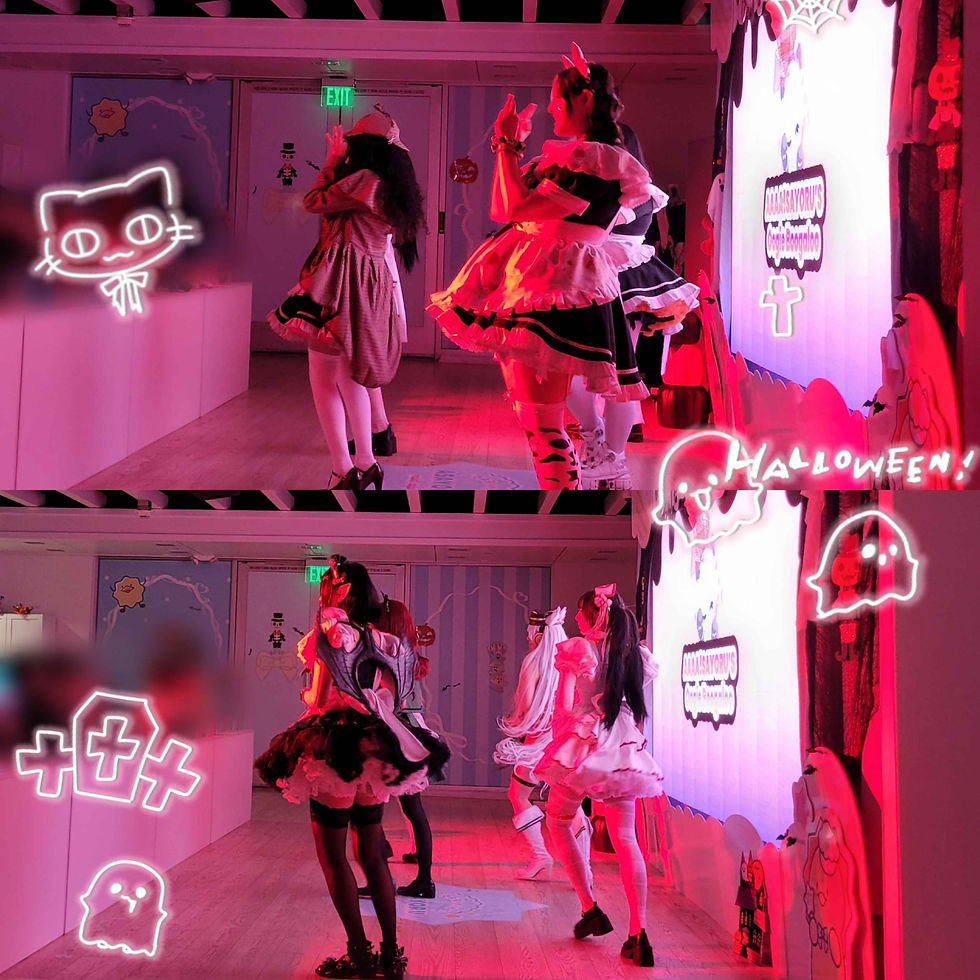 After those two mood setters, service commenced! Of course, much more laughter ,some screaming (Moe Moe BOO!) , and a loooooot of chekis were taken, then came our finale! Did you know, our maids love at-home cafe we've collaborated with them and will often , if given the opportunity, make the great pilgrimage to go home! (we have multiple homes) Many at-home originals will find their way into our setlists and this time it was the appropriately festive Maidmare Party, there's just something about at-home dances that really bring the shine out in who's performing them. Maybe im biased (i am biased) but the finale really stuck with me, i actually love very maidy things and any time i can get both maidy AND topical in one go, im over the moon! Shortly after, our maids in disguise had to see our restless guest out and the night came to an end. Overall, the event was lively and entertaining, everyone i saw left with smiles on their faces (as always, of course) and were ready to continue their Halloween activities into the next week! i hope to see this energy and enthusiasm continue to grow as the year concludes, Asayoru grows every day and we have so much in store for all of you, please continue to watch and support us<3